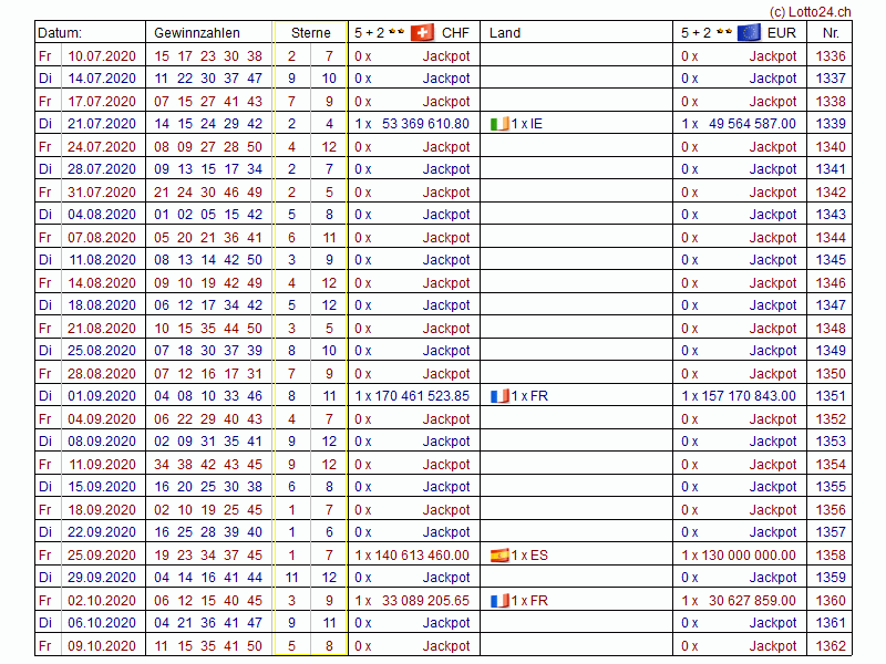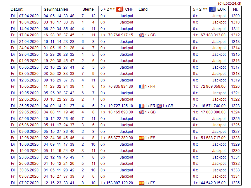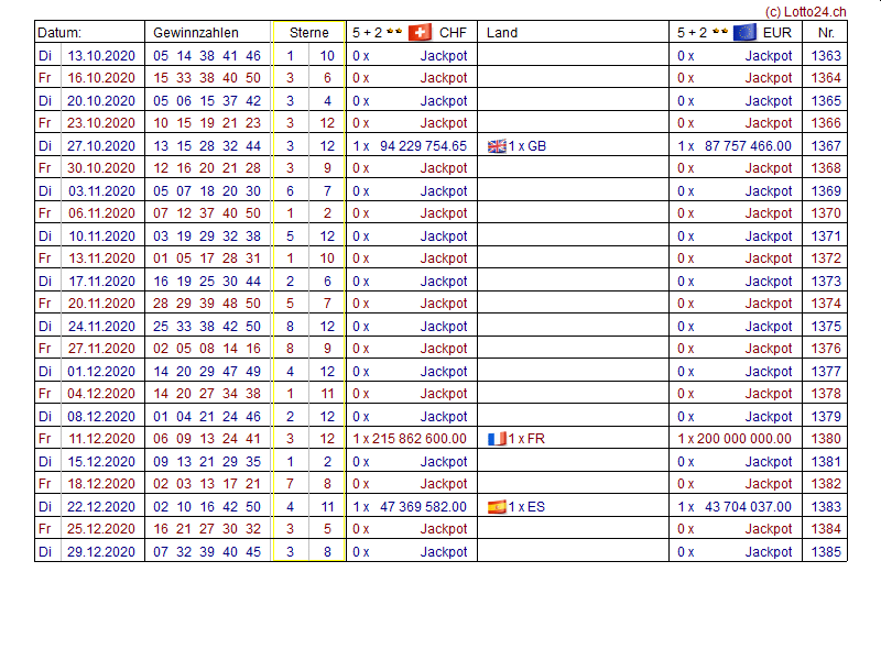 Jahreslisten EuroMillions (EuroMillionen)