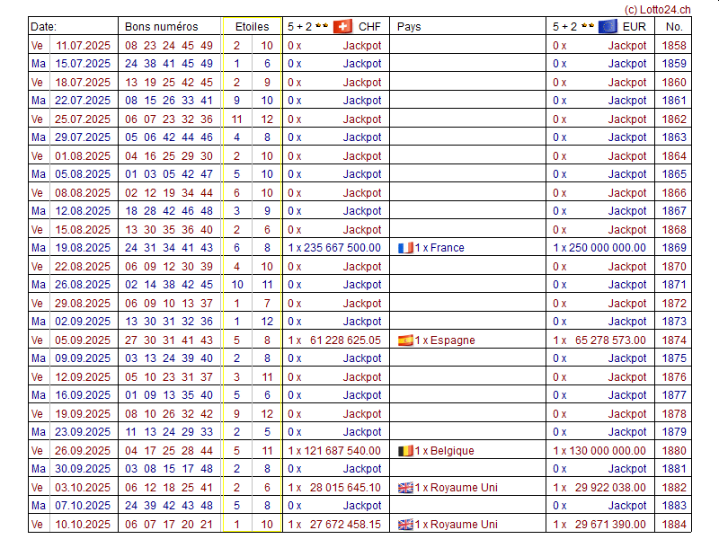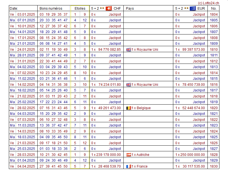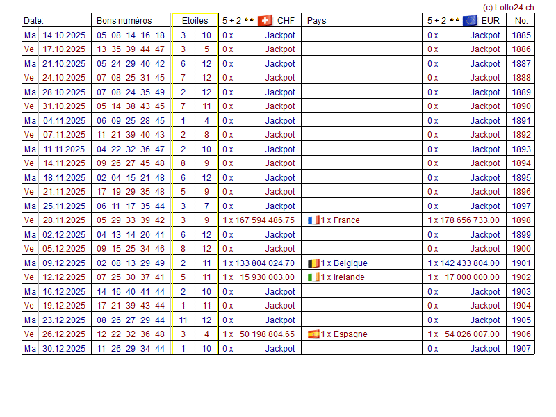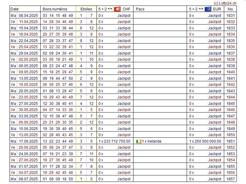 52 derniers tirages